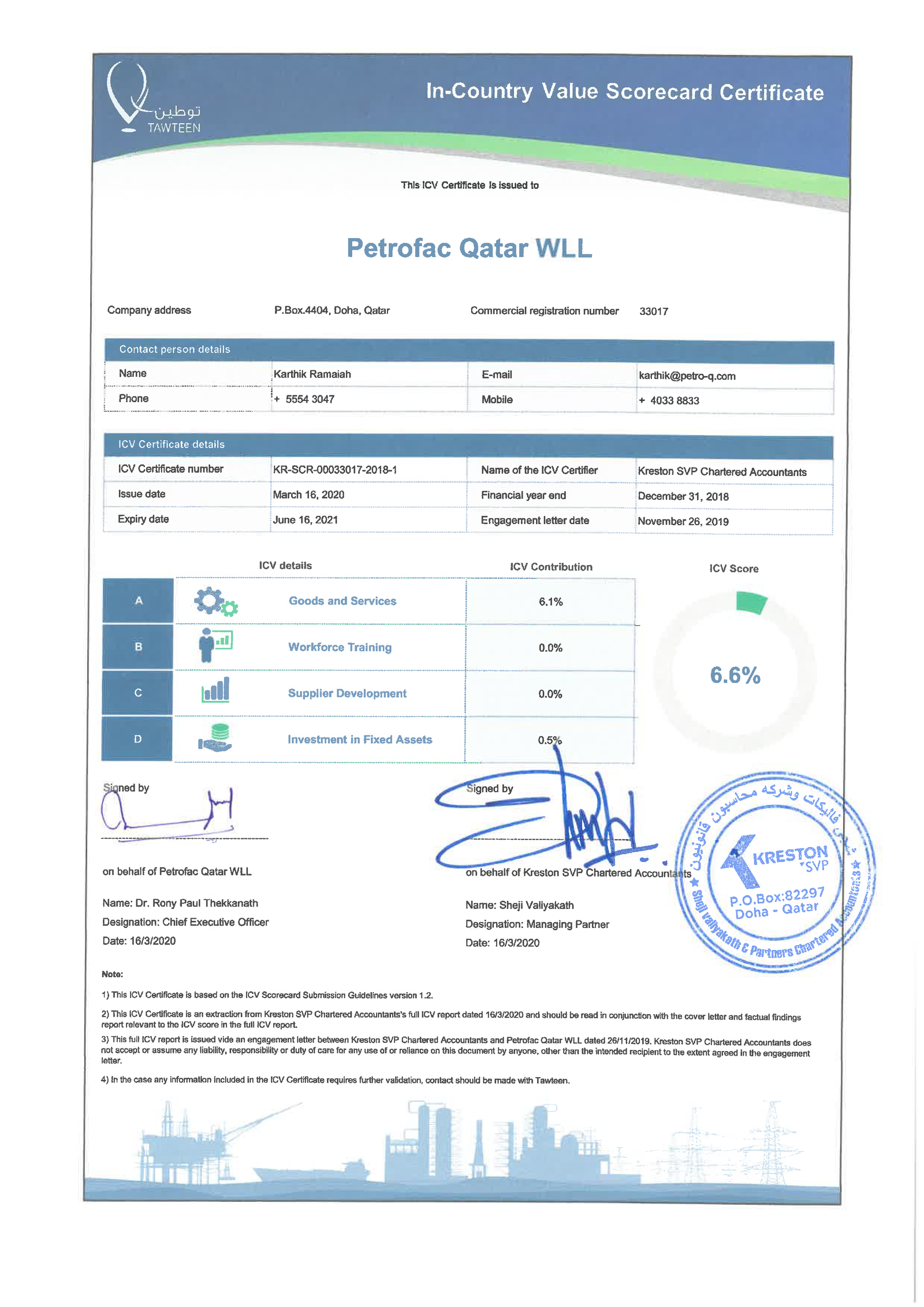 TAWTEEN ICV Certificate